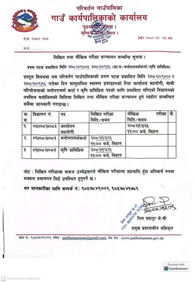 Home » लिखित तथा मौखिक परीक्षा सञ्चालन सम्बन्धमा